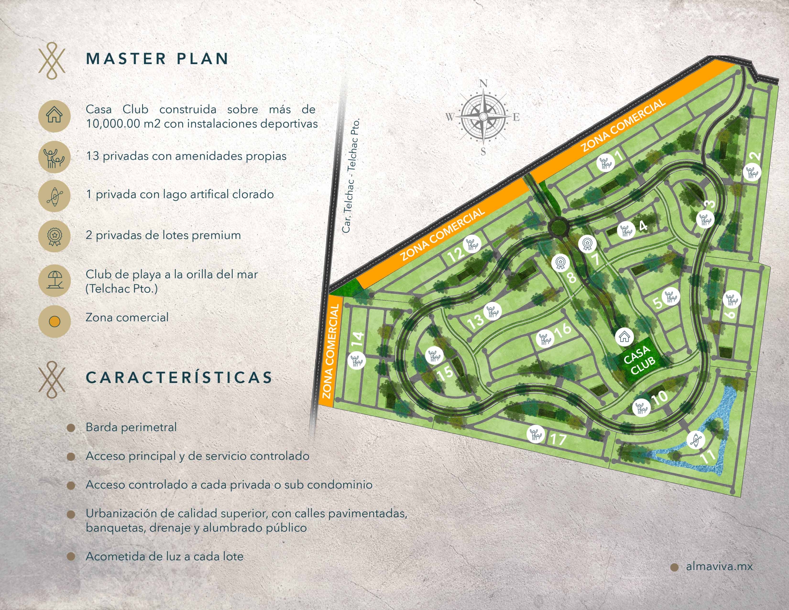 Exclusividad en cada detalleSus altos estándares en el diseño de sus amenidades y servicios, la calidad superior de la urbanización, el paisajismo, así como en la atención a socios y visitantes, son garantía de plusvalía para su inversión-